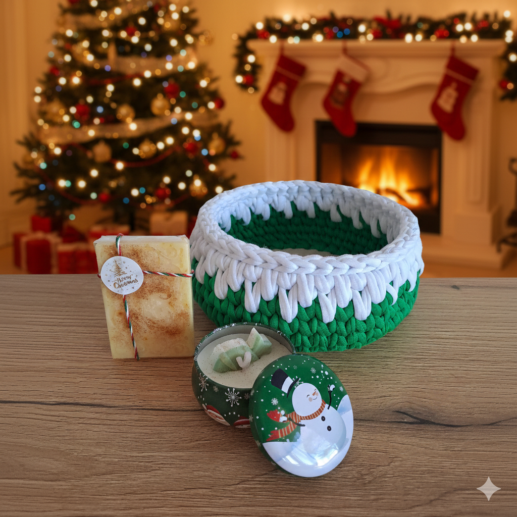 Ročno izdelan darilni set "Zimska Idila" je popolno darilo, ki prinaša toplino, sprostitev in praznično vzdušje v vsak dom. Skrbno izbrani in ročno izdelani izdelki so združeni v prelepi pleteni košarici, ki bo obdarovancu služila še dolgo po praznikih.